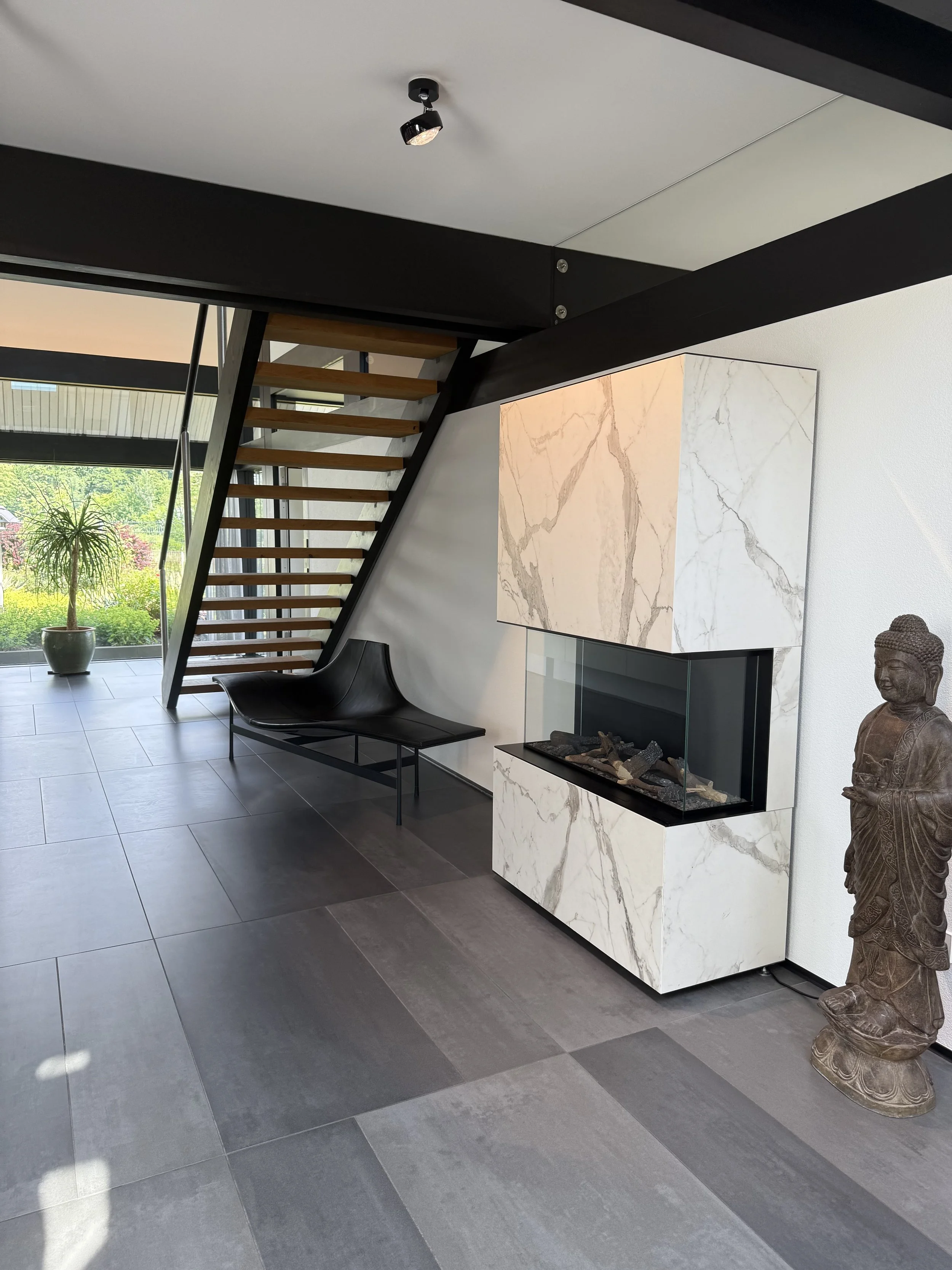 Dank Wärmepumpe und Fußbodenheizung auf allen Etagen genießen Sie ganzjährig ein angenehmes Raumklima – energieeffizient und zukunftssicher.